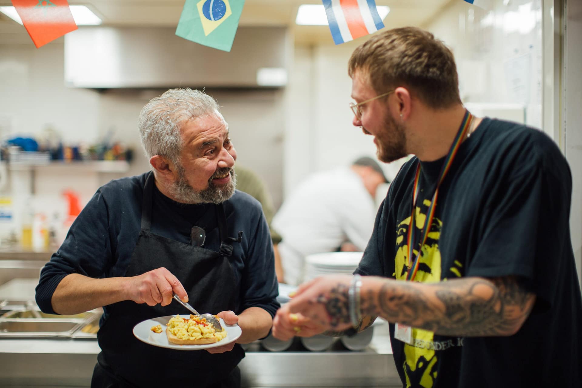 We are proud of our inclusive and diverse Booth Centre community. At the heart of it is our Community Café. The Three Bees Community Café offers people in our community free, healthy meals in a welcoming environment. Our kitchen team use produce straight from our garden, with menus designed in collaboration with people who come to the Centre. The Community Café service is designed and delivered through our Inclusive Volunteering programme. Without them, we would not be able to do what we do.